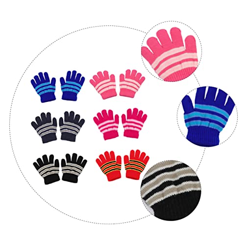 6 Pairs Warm Gloves Full Fingered Knitted Mittens for Boys Cozy and Durable Winter Wear for Ages Easy to Clean Elastic Stripe Design Random Color 3