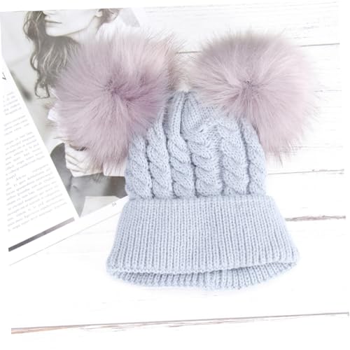 VALICLUD Winter Knit Hat with Double Hairball Design Soft Comfortable Crochet Beanie for Boys for Cold Weather Adorable Grey Color 1