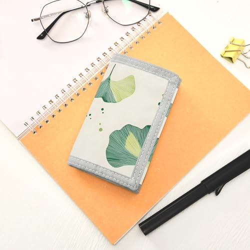 Ginkgo Leaf Array Durable Nylon Fabric Wallet for Boys and Girls - Multi-Functional with 2 Clear Pockets, Zipper Coin Compartment, 3 Card Slots & Keyring 4