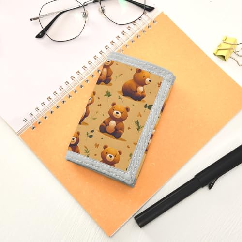 ALAZA Kids Wallets for Boys Girls Toddler Trifold Wallet Children Small Bear Brown with Zipper Coin Pocket 1