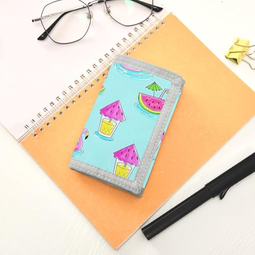 ALAZA Kids Wallets for Boys Girls Toddler Trifold Wallet Children Small Summer Flamingo Watermelon with Zipper Coin Pocket 6