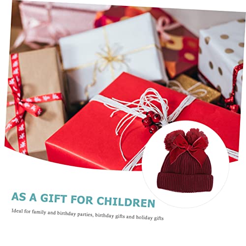 FRCOLOR 1Pc Delicate Bow Knitting Hat with Double Balls Cap for Boys and Soft Skin Friendly Material Adorable Design for Cold Days Dark Red 2