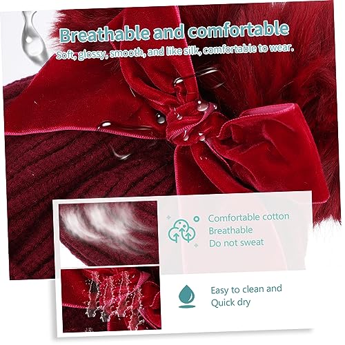 FRCOLOR 1Pc Delicate Bow Knitting Hat with Double Balls Cap for Boys and Soft Skin Friendly Material Adorable Design for Cold Days Dark Red 4
