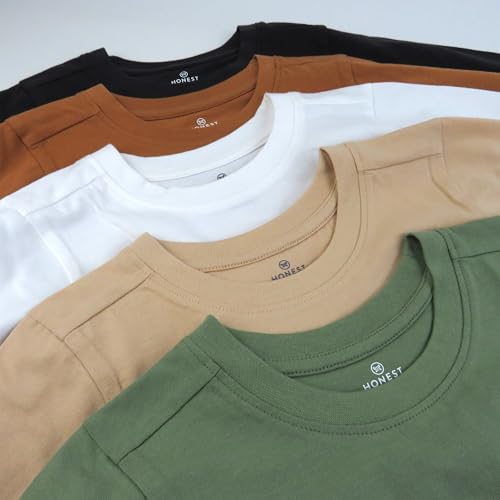 HonestBaby 5-Pack Long Sleeve T Shirts 100% Organic Cotton for Toddler, Little Kids Boys, Girls 4