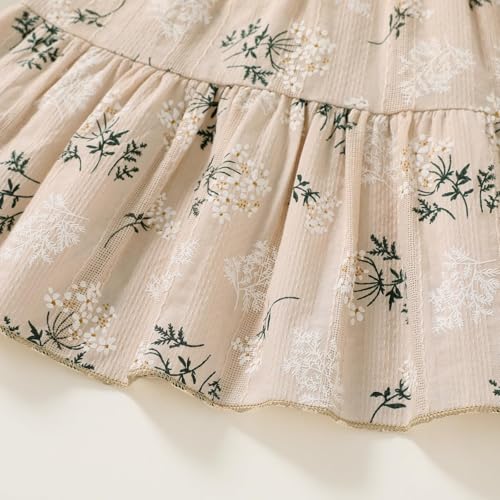 Toddler Baby Girl Boho Dress Linen Ruffle Sleeveless Casual Dress Kids Solid Floral Summer Beach Sundress(Khaki Floral, 4-5T) 7