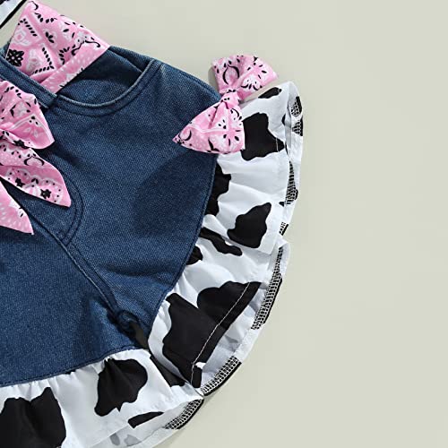 Western Kid Girls Denim Shorts Outfits 1-6T Toddler Baby Ruffle Cow Print Shirt Button Down Tops Belted Jeans Shorts 5