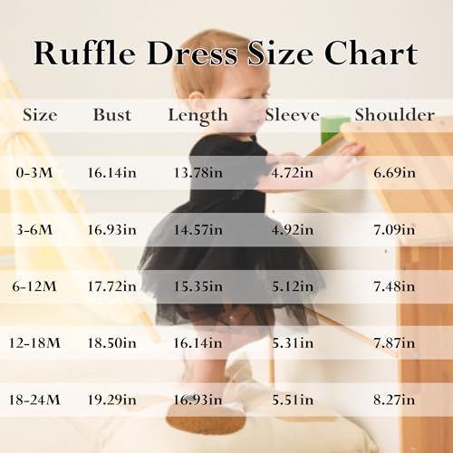 • Size: Suitable for 0-3 months,3-6 months,6-12 months,12-18 months,18-24 months,size chart means age ranges for girl,but they are for general guidance only.For most accurate fit,we recommend checking detailed measurement before purchase