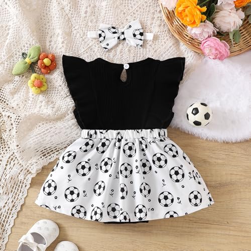 More information about Baby Girl Clothes Newborn Romper Dresses Baseball Soccer Ruffle Sleeveless Bodysuit Infant Summer Outfit with Headband 0-24M