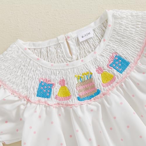 • DESIGN: Kids girl birthday dresses, birthday party dress toddler girl, toddler girl summer dress, baby girl smocked dress, elastic smocked neckline with birthday cake embroidery, dot print, crew neck, short sleeve design, baby girl princess dress 1st birthday, birthday smocked dresses toddler,toddler girl birthday dress short sleeve, birthday toddler girl clothes, lovely clothes to make your little girl more charming