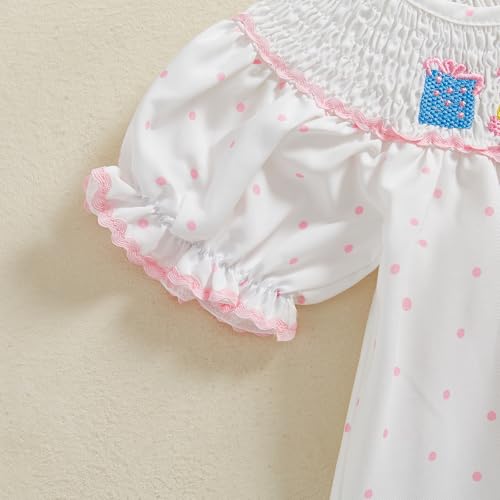 Toddler Baby Girl Birthday Outfit Cake Embroidery Smocked Dress Short Sleeve Princess Party Dresses Summer Clothes 4