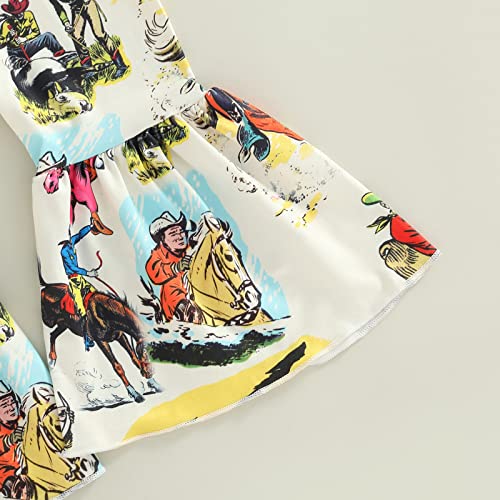 2Pcs Toddler Baby Girl Clothes Letter Print Short Sleeve T-Shirt Top Bell-Bottom Pants Western Cowgirl Outfit Set 6