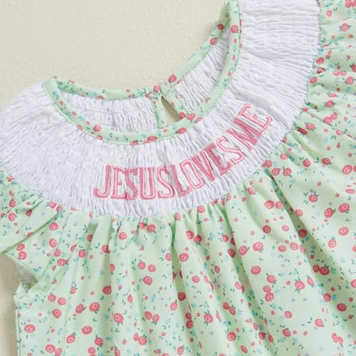 Toddler Baby Girl Christian Outfit Jesus Loves Me Dress Ruffle Sleeveless Smocked Floral Princess Dresses 4