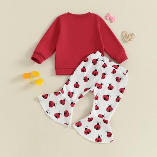Fernvia Toddler Baby Girl Fall Clothes 2T 3T Long Sleeve Crew Neck LadyBird Bee Print Tops Flared Pants Winter Outfits 7