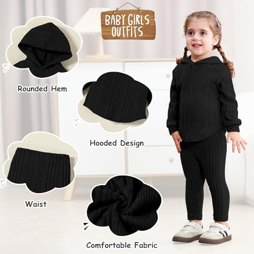 U·nikaka Toddler Baby Girls Clothes Sweatsuit Ribbed Long Sleeve Fall Winter Toddler 2 Piece Outfits Girls Pullover Hoodie 3
