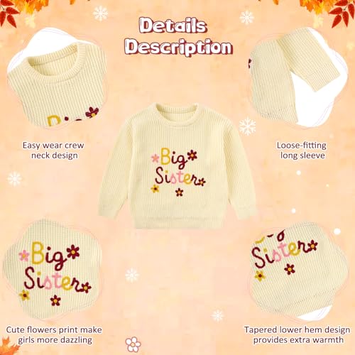 UNICOMIDEA Toddler Baby Girl Big Sister Knit Sweater Little Sister Cute Floral Pullover Winter Fall Clothes for 9M-4Y 6