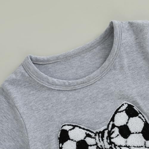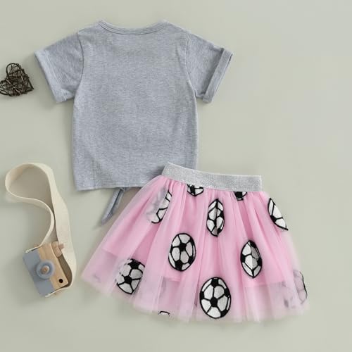 • DESIGNS:Toddler girls summer outfits,baby girl sports clothes,toddler girl baseball outfit,game day baseball shirts girls,casual grey tee tops with fuzzy baseball/football embroidery,round neck,short sleeve t-shirts with a bow tie knot at front,elastic waist tulle skirts with baseball/soccer patterns,a-line fluffy tutu skirt,so adorable and attractive