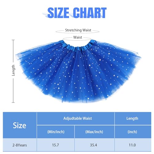• 【Rainbow Colors】Hot pink tutu, light pink tutu, light blue tutu, red tutu, green tutu, purple tutu, yellow tutu, white tutu, black tutu, Orange tutu, rainbow tutu, gold tutu, grey tutu, brown tutu, teal tutu, red white and Blue Tutu, American flag Tutu, Halloween tutu, Christmas tutu. One size suitable for girls 2-8 years old. Length: 11", Waistline: 15.7", waistbands are elastic and stretchable to 35.4".
