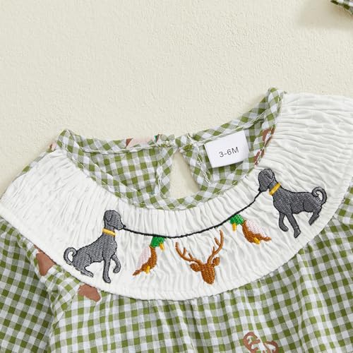 Baby Girl Hunting Outfit Mallard Duck Onesie Smocked Romper Long Sleeve Plaid Jumpsuit Headband Infant Fall Clothes 6