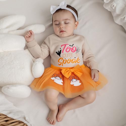 Userdefined Toddler Baby Girl Halloween Outfit Letter Ghost Embroidery Sweatshirt Tulle Skirt Fall Clothes Set 7
