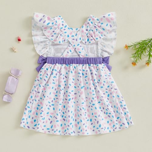 Toddler Girl Dress Flutter Ruffle Sleeve Big Sister Embroidery Smocked Dress with Bows Kids Summer Boho Swing Sundress 6