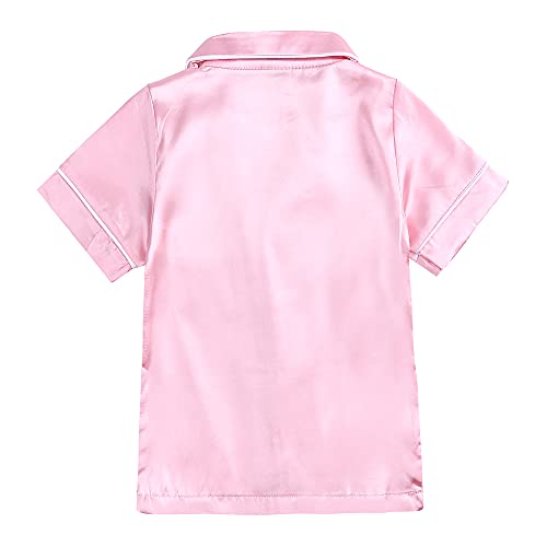 KISBINI Girls Satin Pajamas Button-Down Silk Pajamas for Girls 2 Pieces Sleepwear PJS Set for Kids 1-13 Years 6