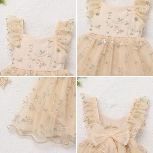 • Fluffy multi-layer pleated chiffon skirt, including 3 layers to increase fullness, 1 layer embroidered with butterfly chiffon and 2 layers of soft chiffon, looks very elegant and charming when rotated. There are three buttons in the crotch area, eliminating the trouble of taking off the jumpsuit and changing diapers, making it super convenient to wear. This dress is made of sheer mesh and embroidered with wildflowers all over, giving a fresh and lovely feeling.