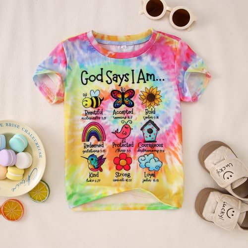 Christian Shirt Toddler Baby Girl God Says I Am Bible Verse Jesus Religious T-Shirt Kid Tie Dye Short Sleeve Tee Tops 6