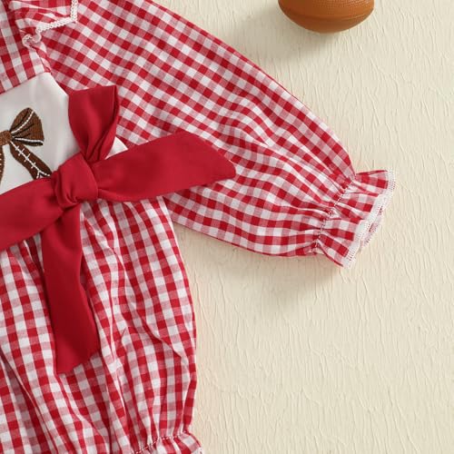 Newborn Baby Girl Football Outfit Bubble Romper Ruffle Long Sleeve Onesie Plaid Bodysuit Fall Clothes 5