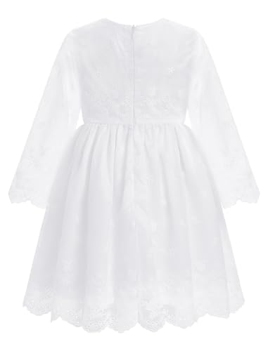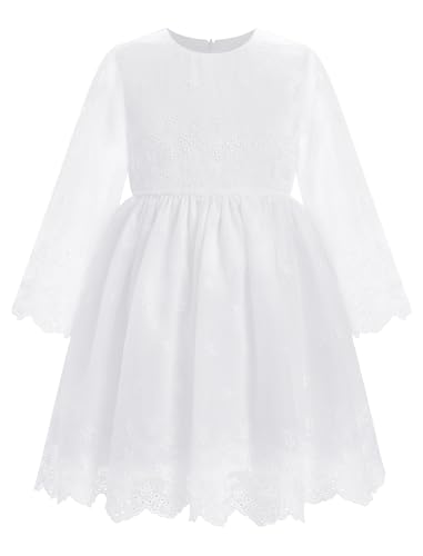 • White Baby Girl Dress: Delicate and darling, this white lace dress is made with a detailed flower and butterfly embroidered netting lace in light ivory for a classic and vintage style. A sweet sheer long sleeve is the perfect accent to the styling of this dress!