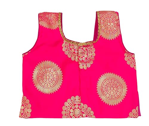 More information about Hot Pink Banarasi Brocade Silk Top and Golden Brocade Silk Skirt Kids Lehenga Choli, Lehenga Set for Girls,