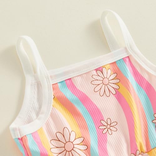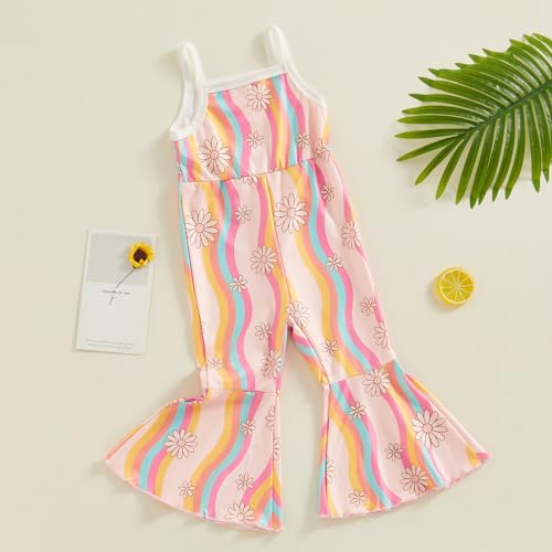 YOKJZJD Toddler Baby Girl Outfits Rainbow Daisy Bell Bottom Romper Jumpsuit Overalls Suspender Pants Leggings Summer Clothes 7