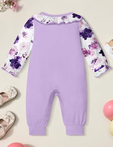 • 【Design Highlights】Ruffle Crew Neck, adds a sweet, playful touch to the romper jumpsuit, enhancing the baby’s cute appearance. Ruffle Windproof Cuffs, Long Sleeves with ruffled cuffs not only look adorable but also lock in warmth, keeping baby’s arms cozy in cool weather. Snap Closure Design, Convenient snap buttons from top to bottom, easy to put on and take off,allow for quick and easy diaper changes, saving time and hassle for parents while keeping the baby comfortable