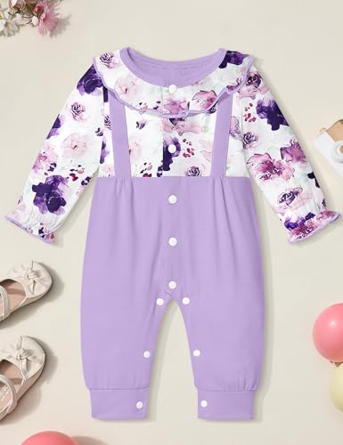 • 【Package Included】1 piece floral print/solid color baby girl romper. It’s cute, stylish and warm, with a comfortable fit, making it ideal baby gifts for newborn girls. Suitable for all seasons