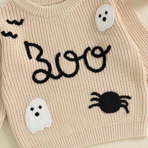 Infant Toddler Baby Boy Girl Halloween Outfit Boo Ghost Embroidery Long Sleeve Knit Pullover Sweater Fall Clothes 4