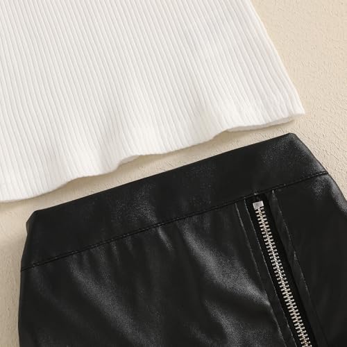 Toddler Girl's 2 Piece Outfits Sleeveless Halter Ribbed Tank Top Pu Leather Aline Skirt Shorts Set 7
