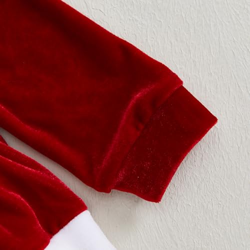 Baby Girl Christmas Outfit Bow Velvet Long Sleeve Romper Dress Newborn Infant Baby Girls Fall Winter Clothes (Red White, 0-3 Months) 5