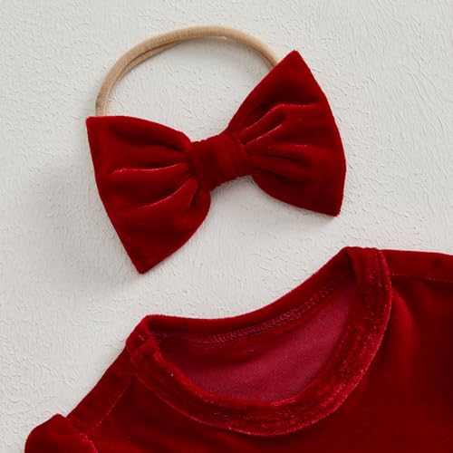 More information about Baby Girl Christmas Outfit Bow Velvet Long Sleeve Romper Dress Newborn Infant Baby Girls Fall Winter Clothes (Red White, 0-3 Months)
