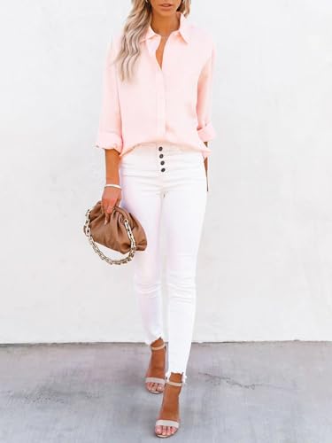 • Features: black button up shirts woman,Oxford boyfriend style, skin-friendly fabric,white button down shirts for women, wrinkle free soft,button-down shirt with collar, dress shirt, Long sleeves, plain solid dressy top, V neck collared tunics, Pink blouses for women fashion, Casual Roll-up Sleeve Button Down Shirts Tops,Shirts for work formal office business. The wrinkle free button up shirt for women make you look more trendy, fashion and freedom.