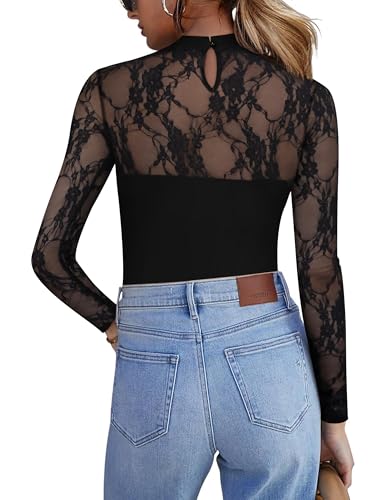More information about Zeagoo Long Sleeve Shirts for Women's Lace Tops Mesh Sheer Crew Neck Shirts Sexy Fall Going Out Blouse