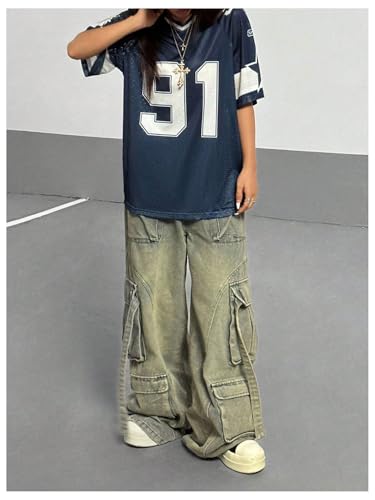 • Features: Drop shoulder, v neck, colorblock, number shirt, graphic print, short sleeve, loose fit, mesh tops for girls