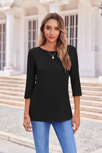 Zeagoo Tops for Women 3 Pack 3/4 Sleeve Crewneck Cute Basics Tees Casual Fashion Summer T Shirts Business Work Tee Top 3