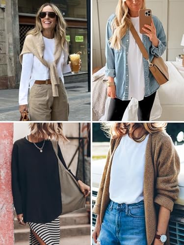 Elesomo Womens Shirts Casual Crew Neck Short/Long Sleeve Tunic Tops Tees 4