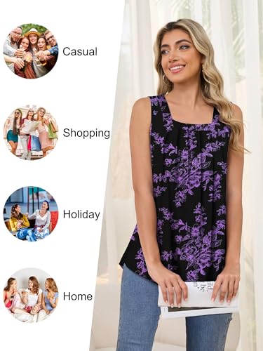 Women Tank Tops Summer Square Neck Sleeveless Tops Loose Fit Flowy Cute Casual Shirts S-3X 5