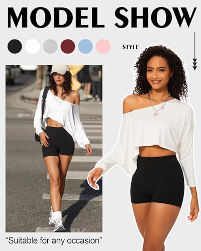 Loose Off The Shoulder Crop Tops for Women Long Sleeve Oversized Crop Tops Workout Spring Summer Casual T Shirt 5