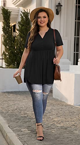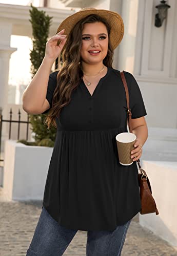 SHIJIALI Women's Plus Size Henley Shirts V Neck Button Tunic Tops Casual Short Sleeve Swing Flowy Tunic 6