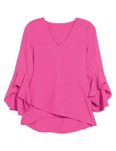 • Design: The blouses for women dressy casual feature classic V neck and elegant 3/4 ruffle sleeve with a layered hem, the flowing ruffle sleeves to shape the perfect outline of your arms for a light and romantic look