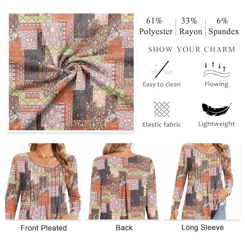 TAOHUADAO Women Fall Long Sleeve Tops Pleated Crew Neck Tunic Casual Dressy Blouse Shirts 6