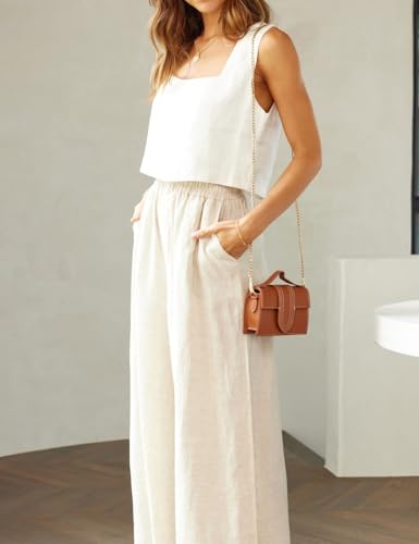 IDEALSANXUN Linen Crop Tank Tops for Women Summer Square Neck Sleeveless Casual Loose Cute Cotton Linen Tops 2