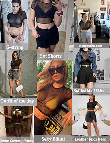 Avidlove Mesh Crop Top for Women Short Sleeve Bodycon Tees Y2k See Through Blouse O Neck Clubwear 5