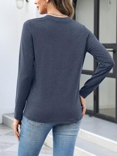 Womens Long Sleeve T Shirts V Neck Ruched Tops Loose Fit Pleated Tee Dressy Casual Tunic Blouses Fall Clothes 4